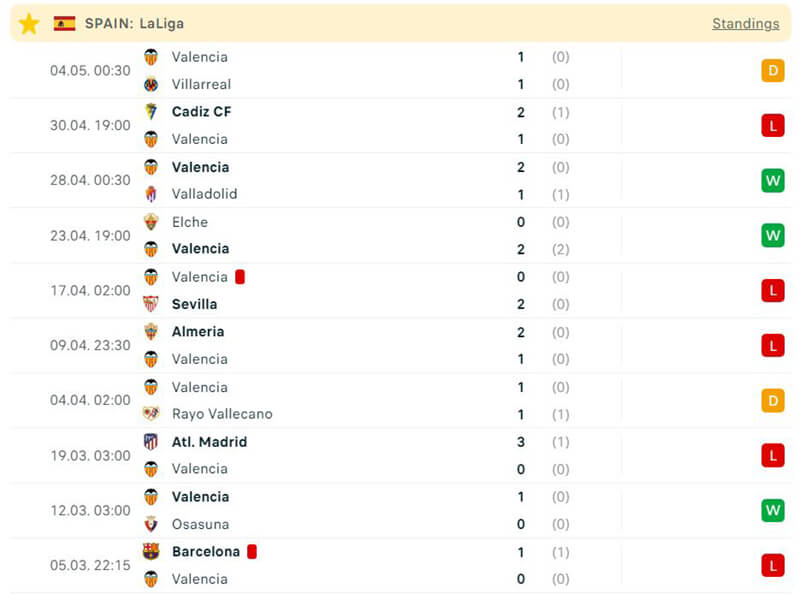 Về phía Valencia cũng đang bị rơi vào khủng hoảng ở giai đoạn cuối mùa giải. Điều nghiêm trọng là hàng thủ mặc dù chơi rất chắc chắn giai đoạn đầu mùa giải cũng đang có chơi vô cùng tệ hại ở những trận đấu vừa qua. Trong 5 trận đấu gần đây, Valencia đã phải vào lưới nhặt bóng đến 6 lần.