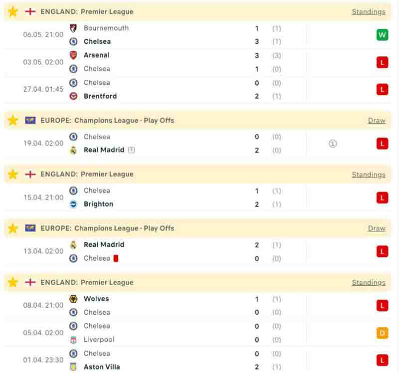 The Blues vẫn chưa thể thoát khỏi khủng hoảng ở mùa giải năm nay mặc dù đã thay tướng. Trong 10 trận đấu vừa qua họ mới chỉ có được duy nhất 1 chiến thắng, ghi được 7 bàn và phải nhận đến 7 thất bại trước cả Wolves, Brentford và cả Aston Villa. Không chỉ vậy, hàng công của Chelsea còn có đến 6 trận tịt ngòi.