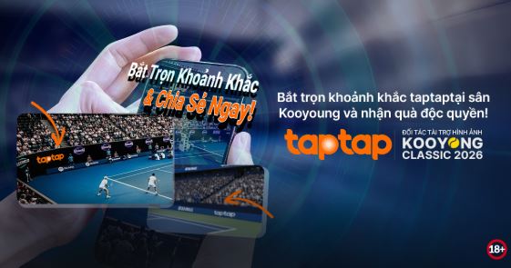 Tại Kooyong Classic 2026, taptap 188bet xuất hiện với vai trò Đối Tác Tài Trợ Hình Ảnh Chính Thức, tập trung vào nâng cao trải nghiệm hình ảnh và thông tin cho khán giả theo dõi giải đấu. Bên cạnh đó, thương hiệu còn triển khai hoạt động tương tác cộng đồng thông qua mini game truy tìm logo taptap trên fanpage taptap, với phần quà là mũ tennis phiên bản kỷ niệm có chữ ký của cựu vô địch Wimbledon. Đây là cách tiếp cận nhẹ nhàng nhưng hiệu quả, giúp gắn kết người hâm mộ với giải đấu mà không làm gián đoạn trải nghiệm thể thao.